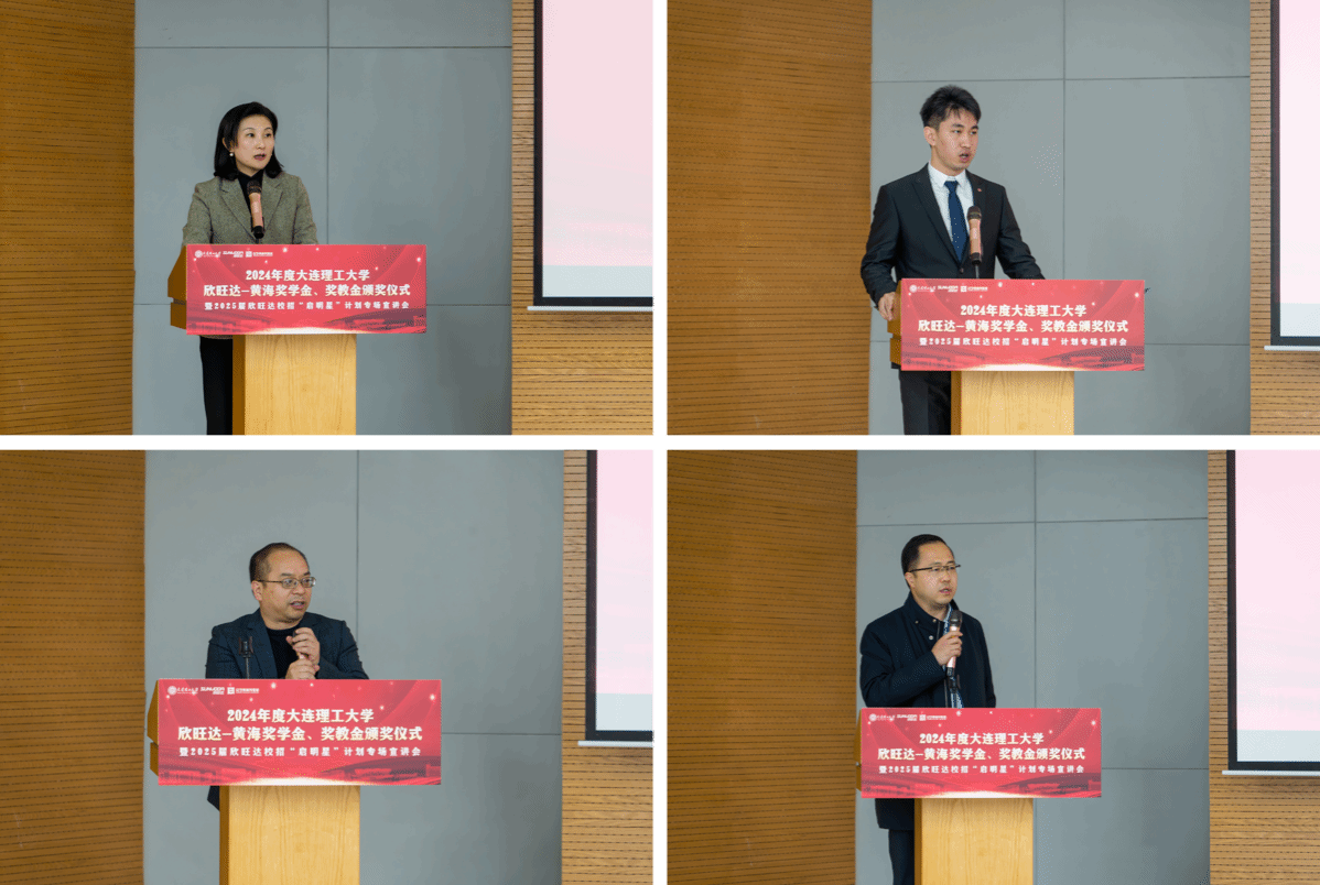 颁奖仪式上,学生服务中心主任金玲宣读了大连理工大学欣旺达-黄海奖学金、奖教金获奖师生名单,双方领导共同为获奖师生颁发获奖证书。