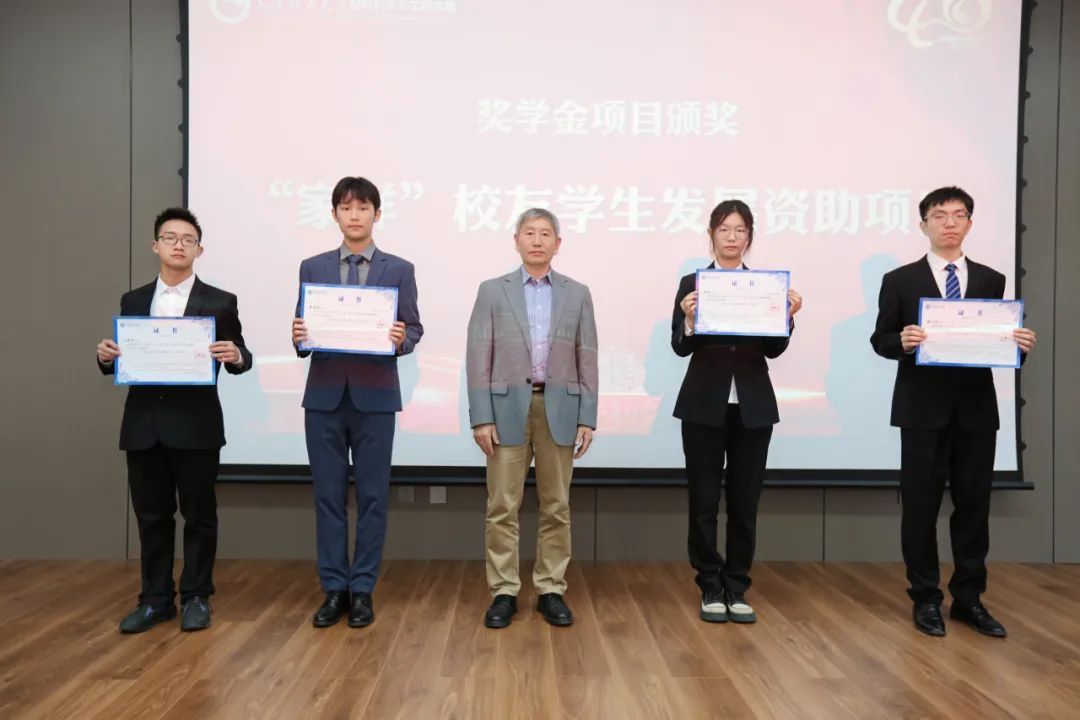 学院奖学金项目颁奖仪式环节,富岗教育基金(受王富岗老师委托,学院党委书记董红刚代为颁奖)、“俊秀”校友学生发展资助项目、“家祥”校友学生发展资助项目、谭毅奖学金四项校友奖学金设奖人和富创育“材”奖学金企业设奖方代表依次上台,为获奖学生颁奖。