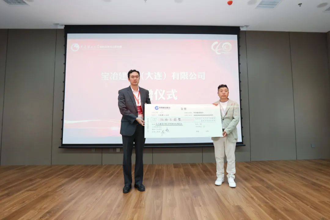 以宝冶、富创、四方电泵、强航时代等公司为代表的爱心企业始终关心关注学院发展,与学院并肩同行。会上学院党委书记董红刚代表学院接受宝冶建设(大连)材料教育发展项目捐赠。