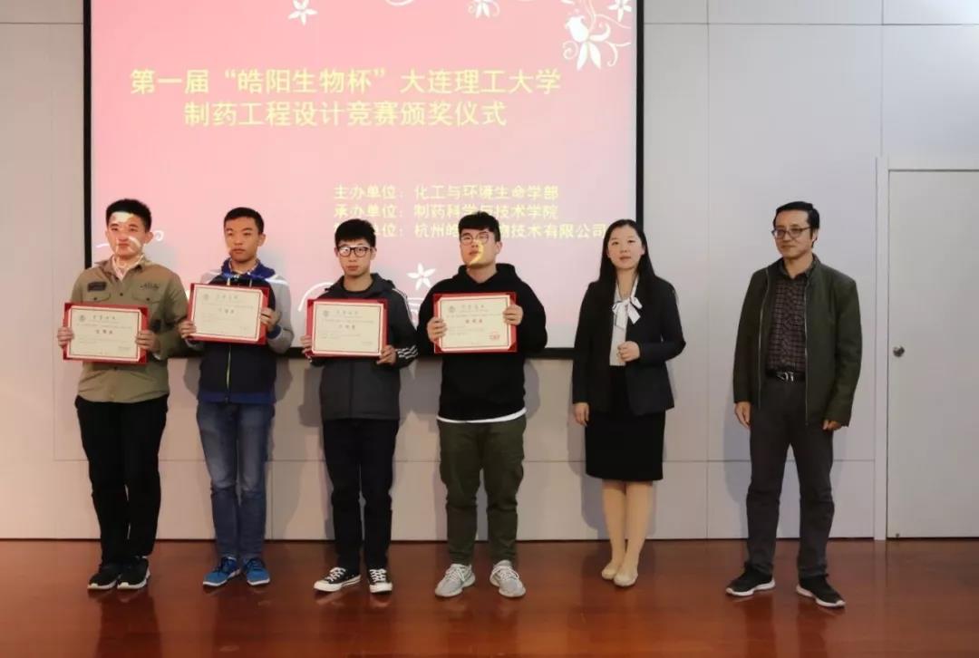 2018年10月11日,第一届“皓阳生物杯”大连理工大学制药工程设计竞赛颁奖仪式顺利落下帷幕,会上对七支获奖队伍进行了表彰。