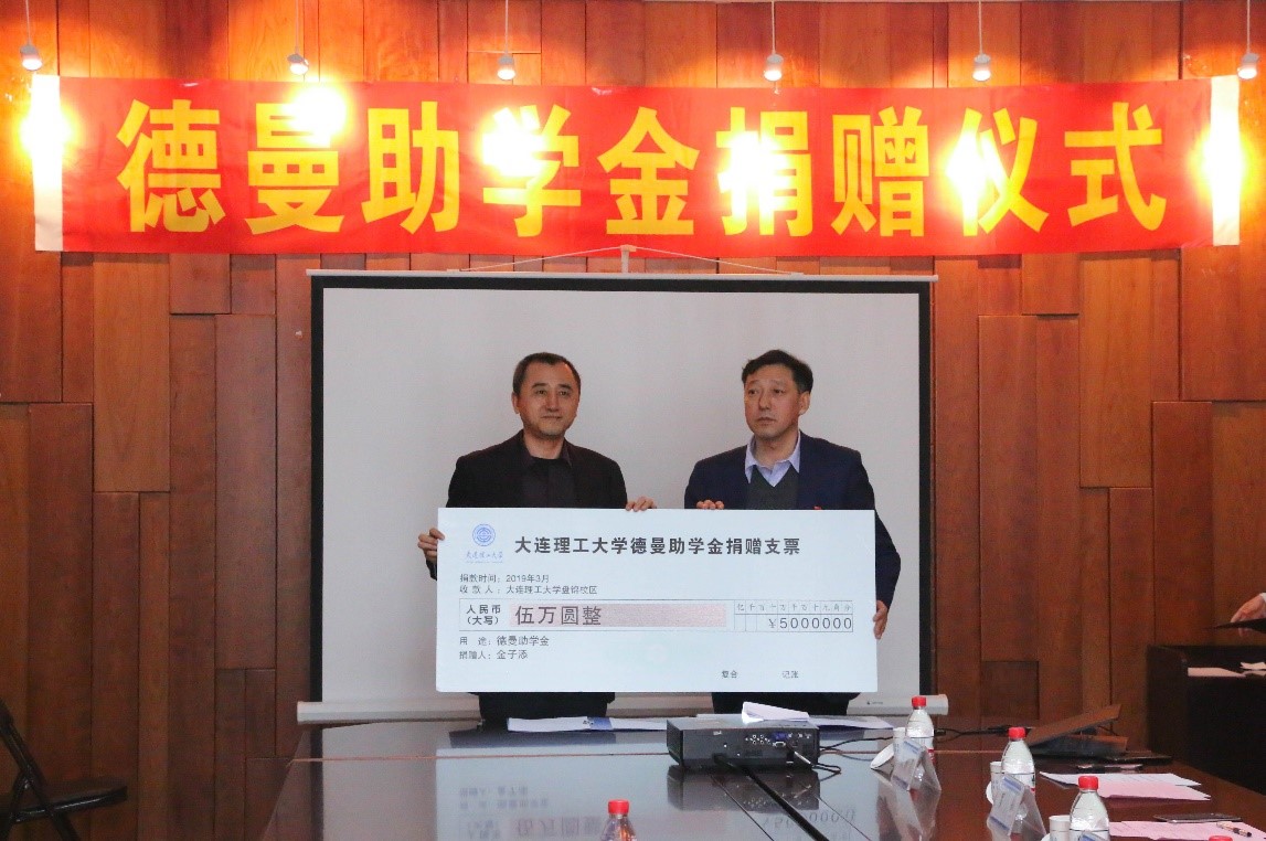 3月5日上午九点,大连理工大学盘锦校区德曼助学金捐赠仪式在G01-W104会议室举行。辽宁德曼耐火材料有限公司总经理金子添出席仪式。大连理工大学盘锦校区党工委副书记、纪工委书记田守智,校区相关部门领导老师参加仪式。