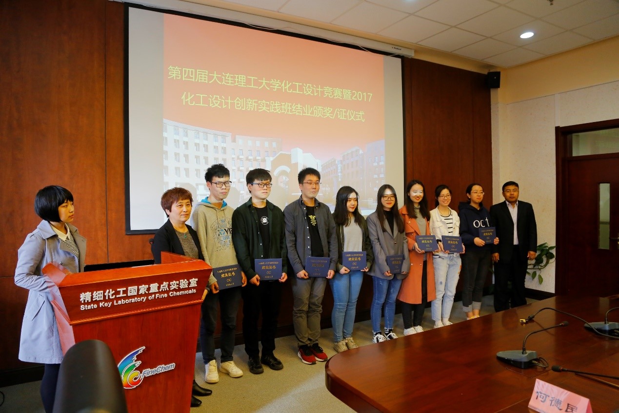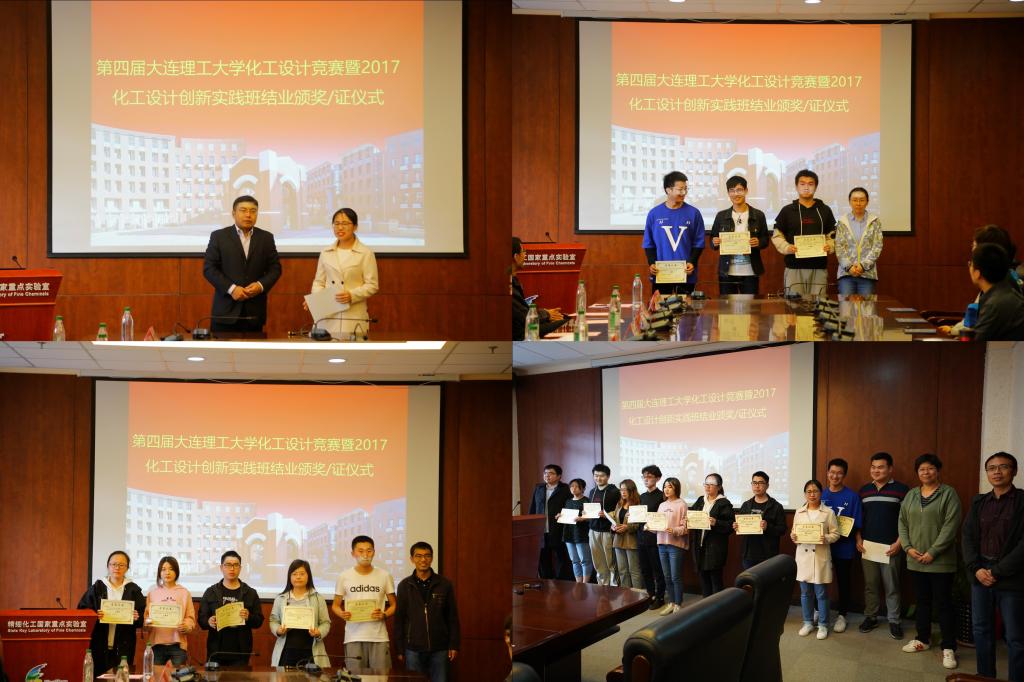 5月8日,第四届大连理工大学化工设计竞赛暨2017化工设计创新实践班结业颁奖/证仪式顺利举行,化工学院教学副院长叶俊伟教授,化工设计创新实践班及竞赛指导教师周颖、关珺、何德民、庞洪昌、李琳、齐骥出席。