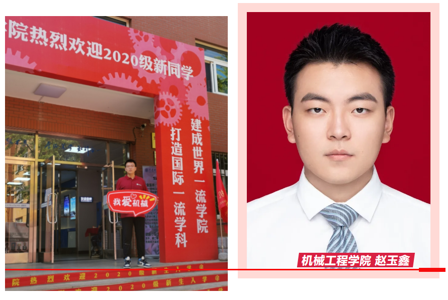 赵玉鑫,男,机械工程学院2018级本科生,现任大连理工大学机械工程学院学生会主席团候选人、轮值主席候选人、机械工程学院18一级队团总支书记。理想信念坚定,综合素质过硬。大工的红色基因是他的指引,机械的求真务实是他的目标。入学以来,始终坚持高标准、严要求的学习生活态度。在2019-2020学年,获得一等学习奖学金和文体、社会工作、社会实践、精神文明等四个单项奖学金,用一腔热血书写新时代机械人的铸梦故事。