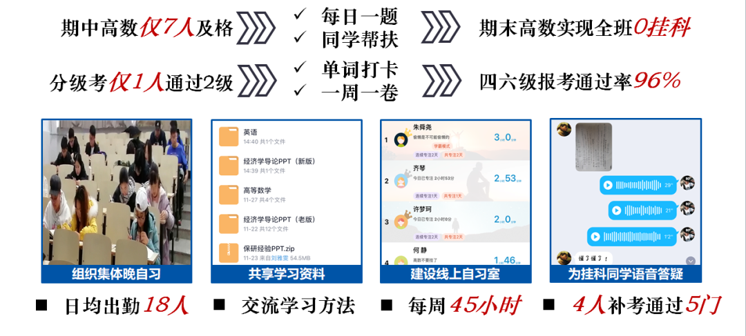 带动他人,共同发光。作为班级学习委员,他带头制定和开展学风建设,每日一题、同学帮扶制度使得全班高数从期中的仅7人及格到期末实现0挂科。单词打卡、一周一卷的实施使得班级四六级报考通过率高达96%。不仅如此,他还组织晚自习,建设线上自习室,为补考同学语音答疑等,不让班级的每一位同学掉队。身为学院团委组织部干事,他认真负责,协助副部长处理好团组织各项事宜,积极策划、主持团校培训,时时刻刻贯彻服务他人的工作理念。事无巨细的优异表现和自信积极的工作态度使他获得了班级同学、辅导员和任课老师的一致好评。