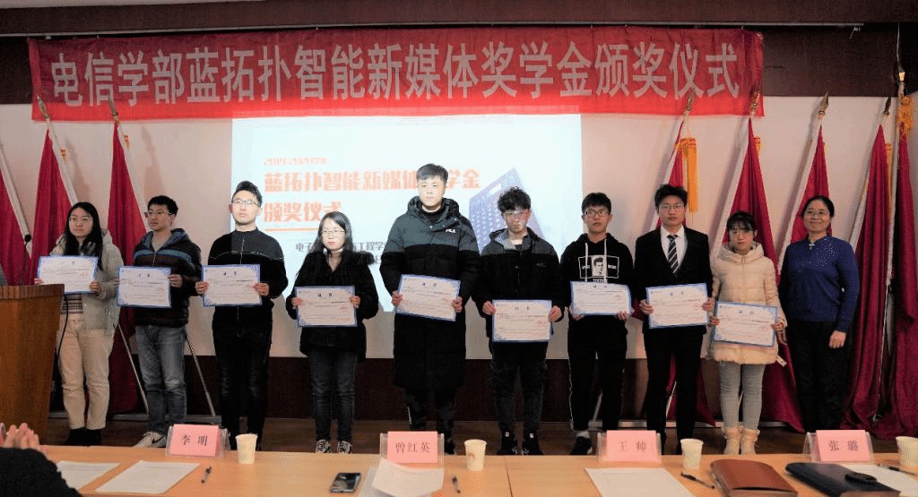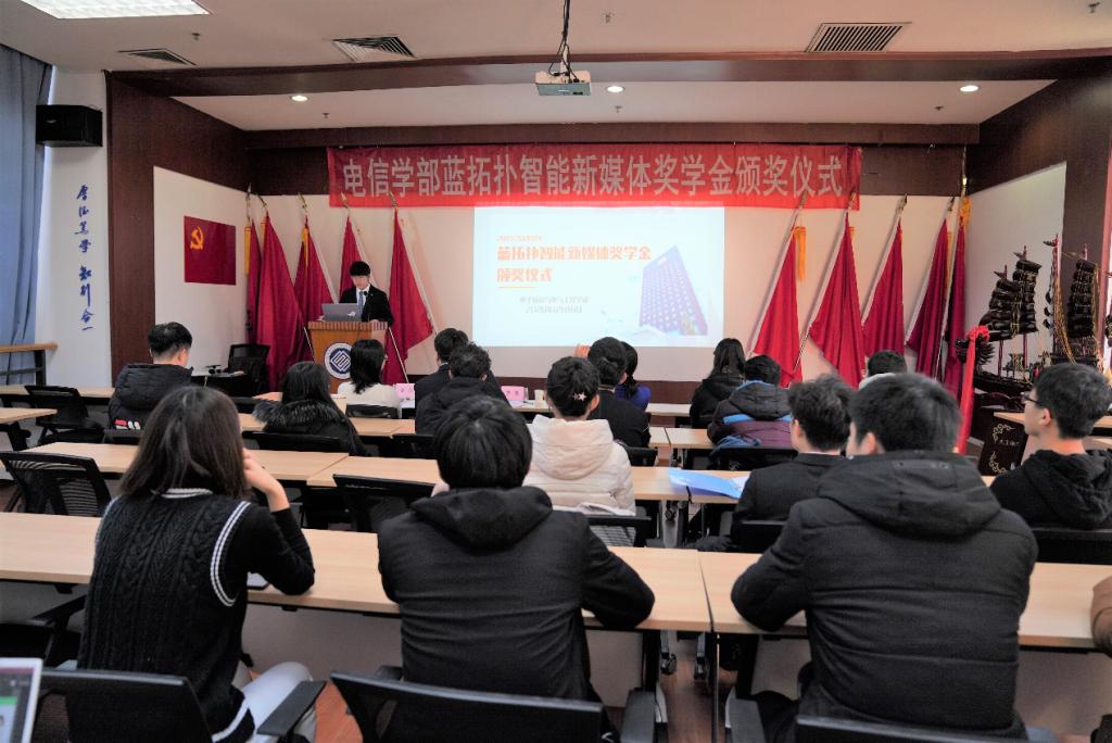 12月16日下午,电子信息与电气工程学部蓝拓扑智能新媒体奖学金颁奖仪式在创新园大厦二楼报告厅成功举办。