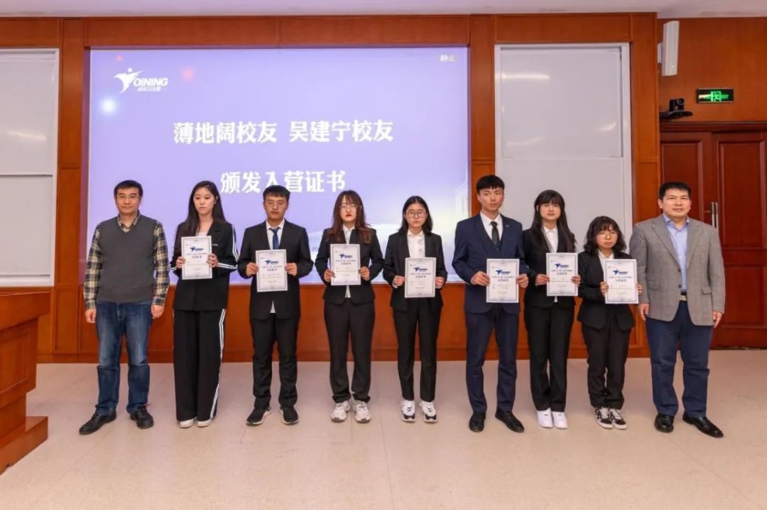 杨克旭老师宣读第三届卓英训练营入营成员名单。薄地阔、吴建宁校友为入营团队代表颁发入营证书。