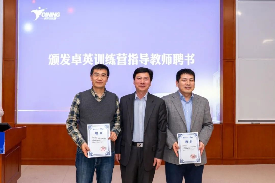 卓英训练营聘请薄地阔、吴建宁校友为训练营指导教师,朱方伟老师为两位校友颁发了聘书。