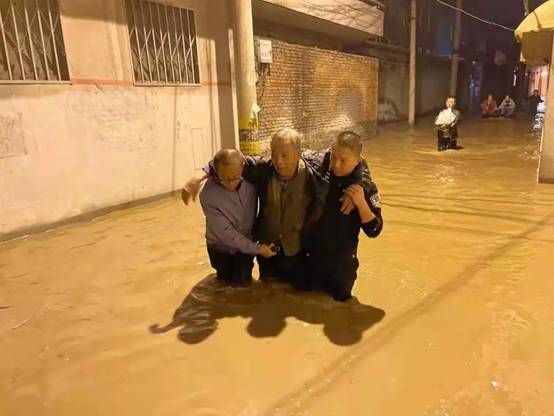 在民警官兵的帮助下,她的父母很快被转移安置到了运城。妈妈把转移过程中的照片实时发给薛同学,让她放心。在这些照片里,一张官兵挎着邻居家爷爷趟着水撤离的照片让她感动许久,作为一名党员,她知道这搀扶背后的意义。