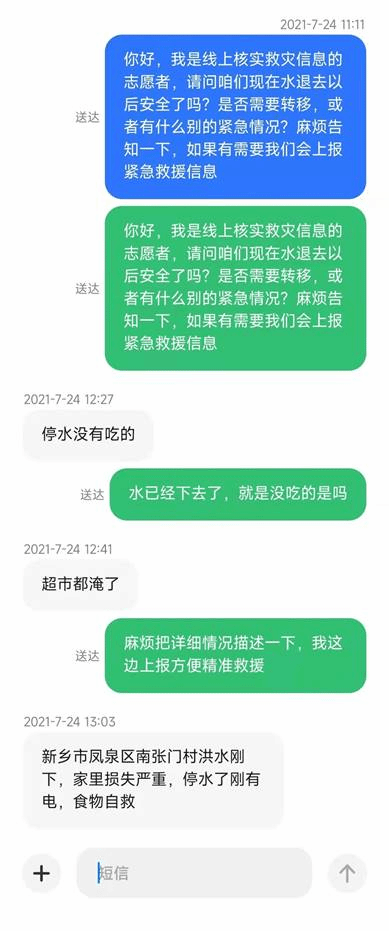 组里的几个人都特别上心,有的人连吃饭时间都用来确认受灾群众信息,只为尽早帮助到河南的同胞。3天里,四个人共核实了数十条待救援人员信息。