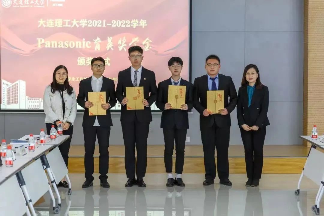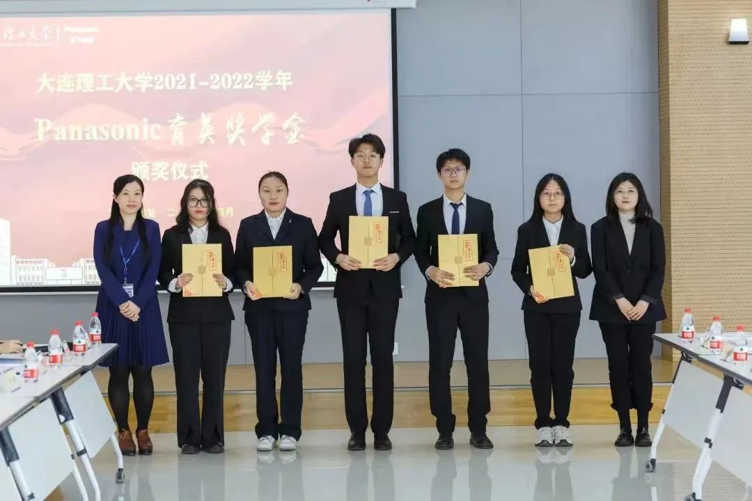 颁奖仪式上,大连理工大学招生就业处副处长郑皓宣读了2021-2022学年Panasonic育英奖学金获奖学生名单,双方领导共同为获奖学生颁发获奖证书。