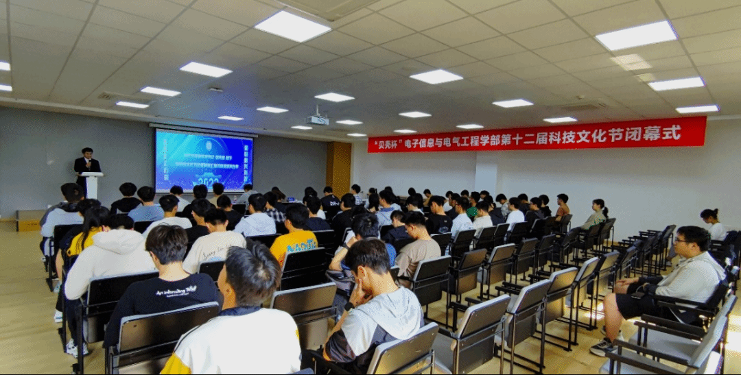 科技兴则民族兴,人才强则国家强。为深入学习习近平总书记关于科技创新的重要论述,履行高水平科技自立自强的使命担当,历时6个月的“贝壳杯”电子信息与电气工程学部第十二届科技文化节于5月12日下午正式闭幕。电信学部团委书记孙智妍、团委副书记张世凯及学生代表参加闭幕式,优秀科创青年黄子琛同学做科创经验分享。