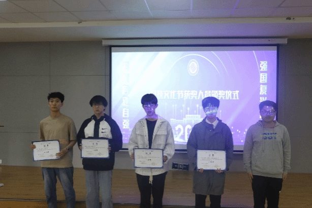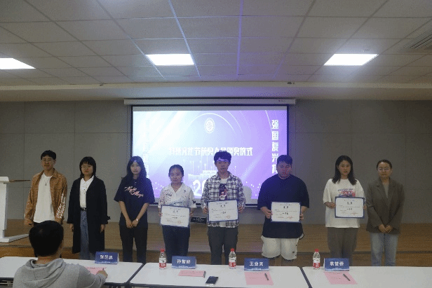 孙智妍老师和张世凯老师为本次科技文化和科技创新两大赛道的获奖团队代表颁奖,激励获奖者再接再厉,再谱新篇。颁奖仪式也鼓舞着更多的参与者和科创热爱者,立志在下一届的科技文化节中积极创新,勇立潮头,争取赛出新的高度。
