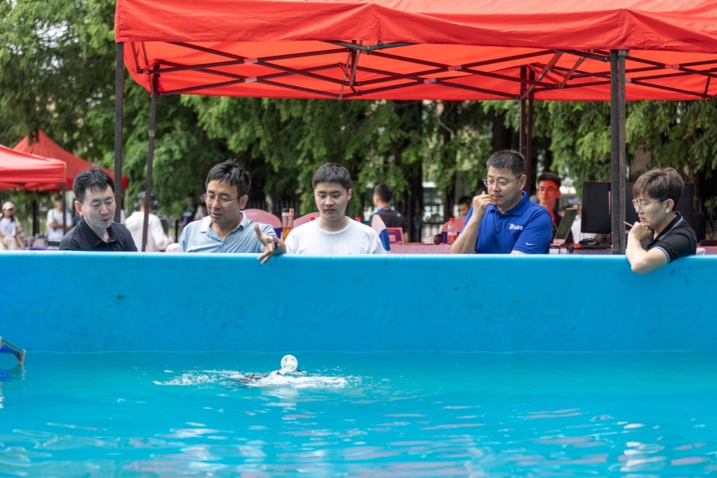 在水池中进行的B类(设计与制作)与C类(智慧船舶与海洋工程技术)比赛,是本次大赛中最有难度与技术含量最高的项目,对参赛团队、参赛选手的综合水平提出了更高的要求。但选手们带来的参赛作品展现了优异的性能,令人眼前一亮。大批的观众围绕在水池周围,为航行器完成的一次次精彩的水上和水下操作赞叹不已。与此同时,评委专家们以航行器功能、实际制作等方面为依据进行打分,同时细心地指出作品的不足之处,提出改进建议。