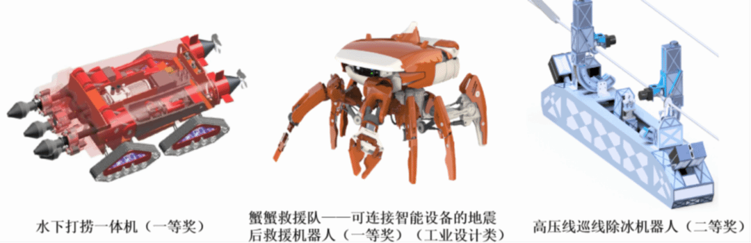 校内选拔赛于4月开始筹备,通过DUT学生设计俱乐部开展赛事相关培训工作。在教务处、机械工程学院和创新创业学院的大力支持下,师生们经过不懈努力,共报送了16项作品参赛,其中11项作品入围区域赛。最终我院水下打捞一体机团队、蟹蟹救援队—可连接智能设备的地震后救援机器人团队获得国赛一等奖,高压线巡线除冰机器人团队获得国赛二等奖,其他8项作品获区域赛奖。